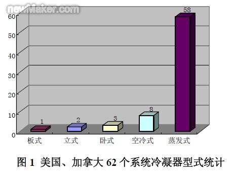蒸發(fā)式冷凝器是一種高效節(jié)能的換熱設(shè)備。由于傳熱效率高、結(jié)構(gòu)緊湊和安裝方便等優(yōu)點(diǎn),目前已經(jīng)在美國等國家得到廣泛的應(yīng)用。根據(jù)作者對(duì)美國和加拿大62 個(gè)公用冷庫制冷裝置的調(diào)查[1]發(fā)現(xiàn),蒸發(fā)式冷凝器的應(yīng)用約占81%,見圖1。