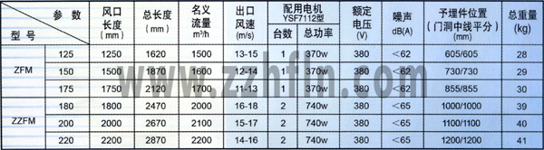 ZFM2.5A型軸流風幕技術參數(shù)