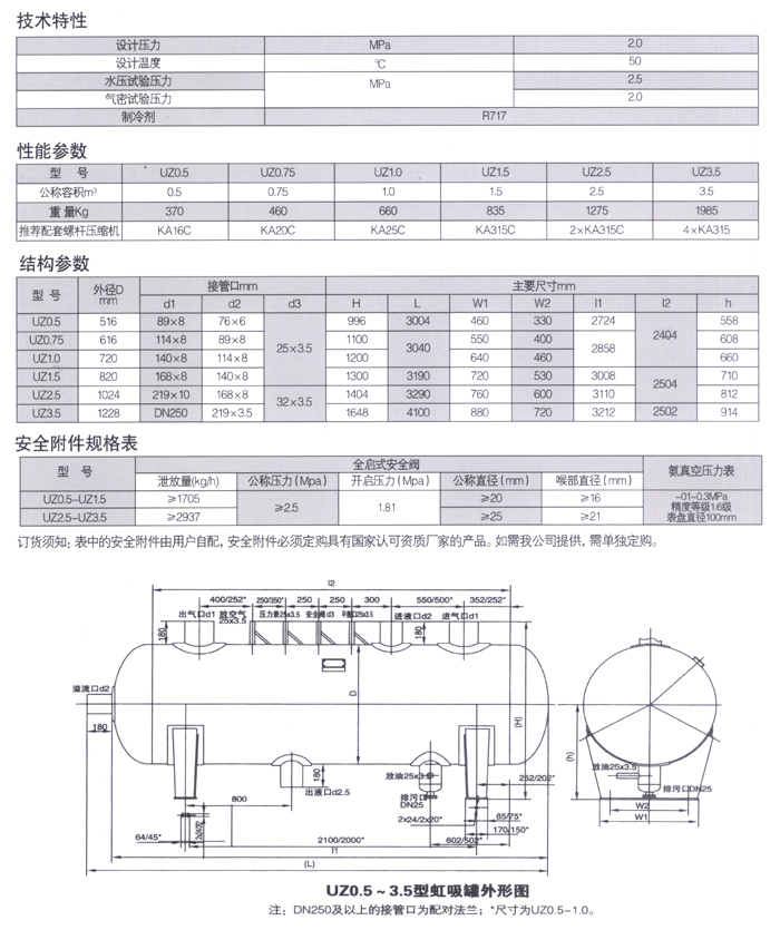 UZ系列虹吸罐主要用于液冷油冷螺桿壓縮機(jī)制冷系統(tǒng),用以保證冷凝器冷凝后的液體優(yōu)先供給油冷卻器。